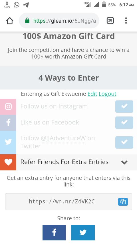 See Click Here tab for details on how to get an Amazaon free gift card. The total can be 1 5 10 or 25 and for a limited time users. Next click on the gear icon in the lower-right corner of the cover photo and next click on the Give Gift link.